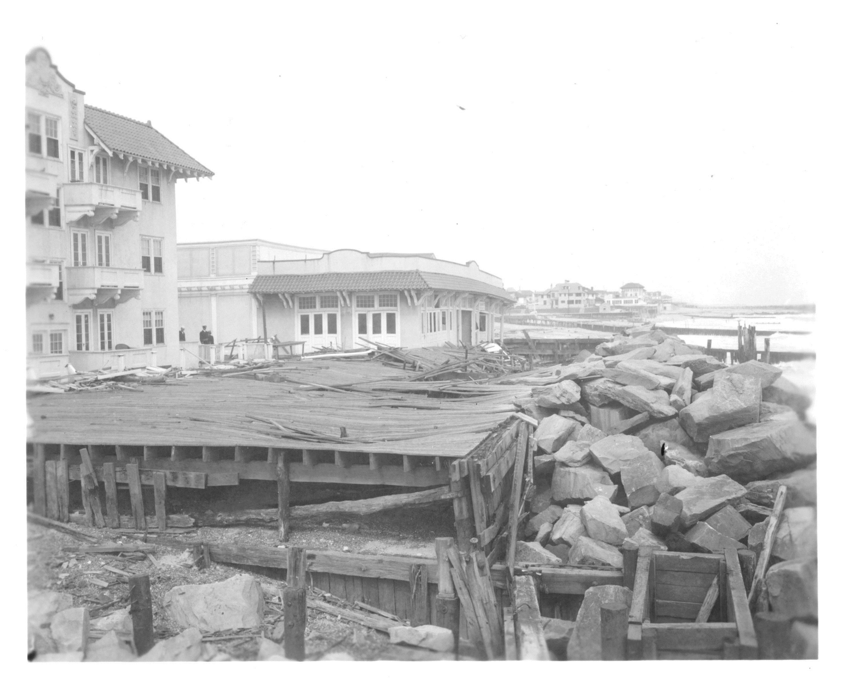 The Atlantic City area sustained millions of dollars’ worth of damage with all utilities and transportation disrupted. In some places whole sections of the boardwalk, with rails and benches still intact were blown four blocks inland. The Brigantine City Bridge connecting the island to the mainland was destroyed.